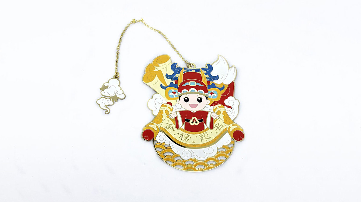 聚福和文創(chuàng)金榜題名創(chuàng)意書簽,是一款很有意思的文創(chuàng)產(chǎn)品。設(shè)計(jì)以卡通動(dòng)漫狀元郎為原型,紅色為金黃色主色調(diào)彰顯喜慶大氣富貴,整體外觀精美大氣,又很開可愛(ài),金屬鏈條搭配祥云,背面又可印LOGO圖文,或者人名。金榜題名創(chuàng)意書簽很適合做為校園文創(chuàng)禮品,或者做為畢業(yè)禮品送同學(xué)朋友。