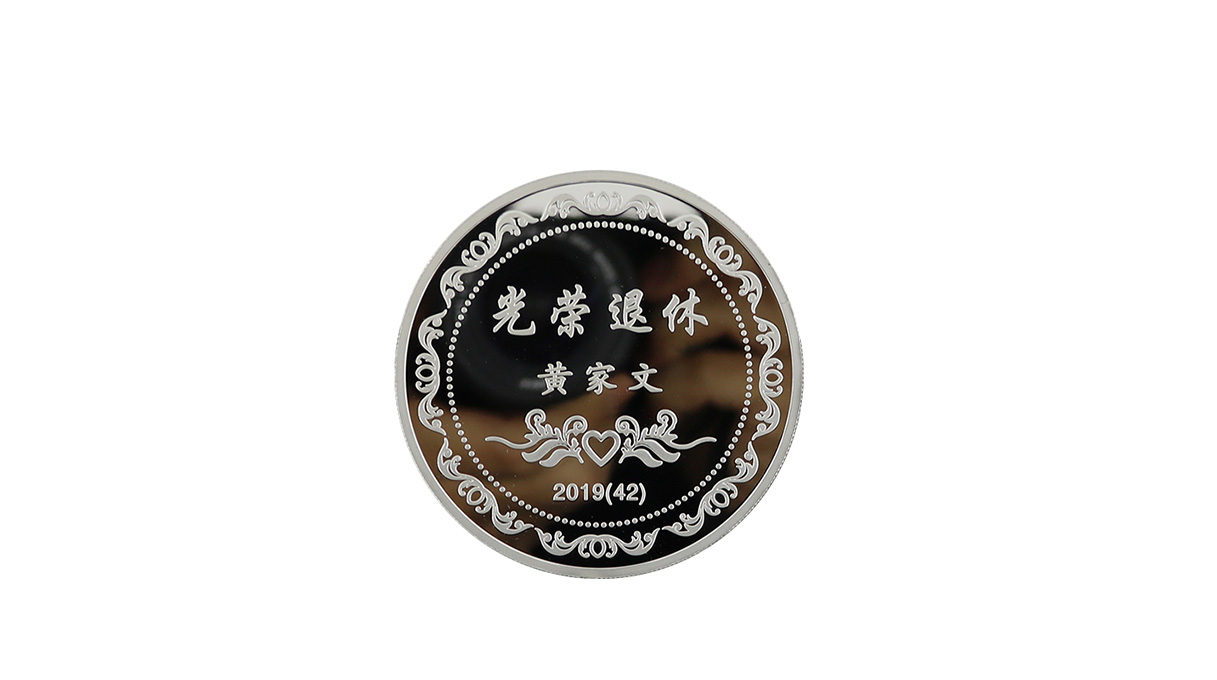 深圳市聚福和包裝制品有限公司是一家集設(shè)計、生產(chǎn)、制作于一體的文創(chuàng)紀念章定制廠家,為企業(yè)提供金銀紀念章設(shè)計制作解決方案。公司免費文創(chuàng)設(shè)計,專業(yè)定做純金、純銀、銅、鋅合金等各種材質(zhì)紀念幣,此為單位退休紀念銀幣定制,光榮退休銀幣定做案例